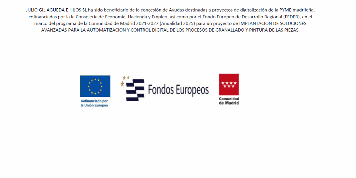 JULIO GIL AGUEDA E HIJOS SL ha sido beneficiario de la concesión de Ayudas destinadas a proyectos de digitalización de la PYME madrileña,